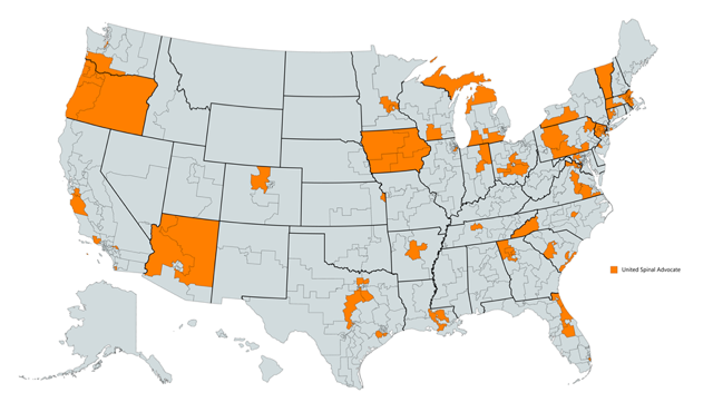 We now have 83 out of 435 Congressional districts that have at least one United Spinal advocate signed up. 29 out of 50 states have at least one advocate signed up. Our message carries more weight with every person who sends in the survey. So please sign up.