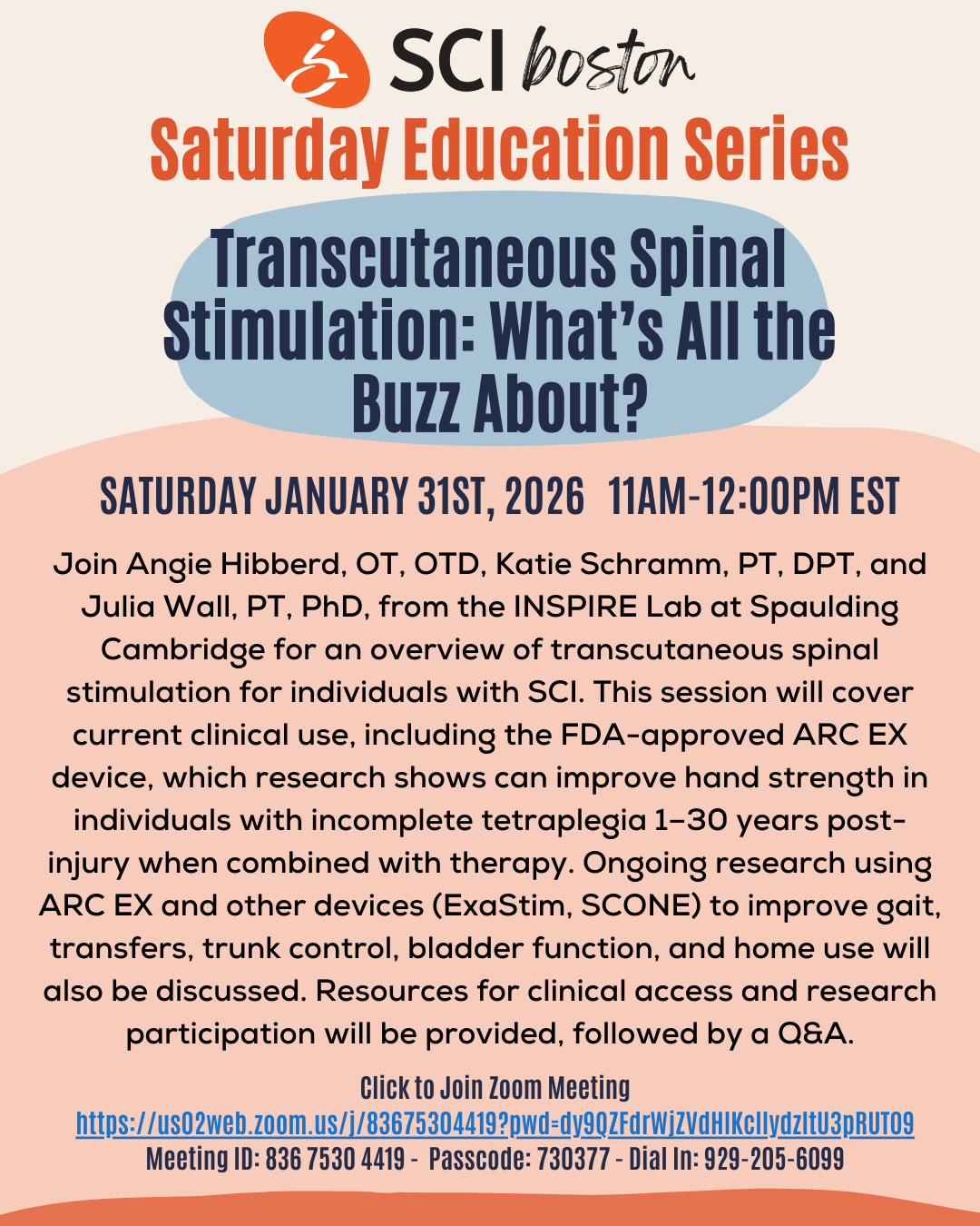Join Gerard Arnum, Grassroots Advocacy Manager at the Christopher & Dana Reeve Foundation and Vita Brown, SCIboston's Advocacy Coordinator, on May 10th for our next Saturday Education Series: Getting Started with Grassroots Advocacy. This webinar is designed for both seasoned and new advocates to help empower individuals impacted by paralysis to take action through grassroots advocacy. Learn how to share your story, connect with policymakers, and create lasting change. We'll speak about the Reeve Foundation's Grassroots Advocacy Toolkit, highlight helpful resources from the Reeve Foundation’s National Paralysis Resource Center (NPRC), and share easy ways to make your voice heard.